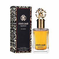 The bottle is a stunning reflection of the scent’s character: sleek black glass with a high-gloss finish, crowned by the golden Roberto Cavalli crest. A gold band featuring Cavalli’s signature animal print encircles the neck, adding a fierce touch of glam. Refined and fierce, the design symbolizes sophistication with a seductive edge.